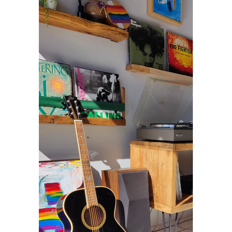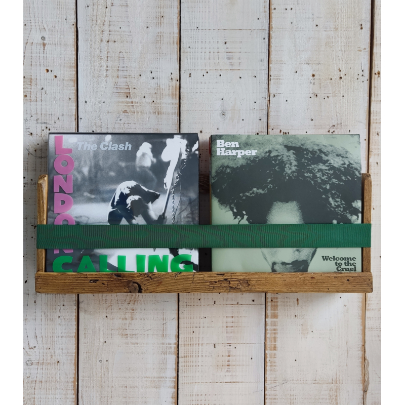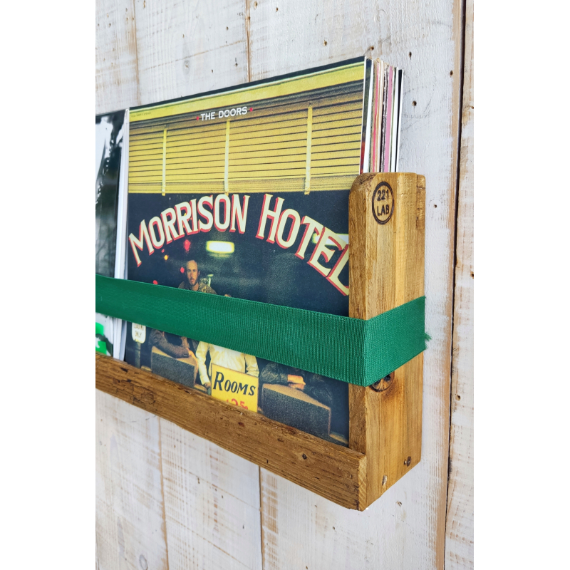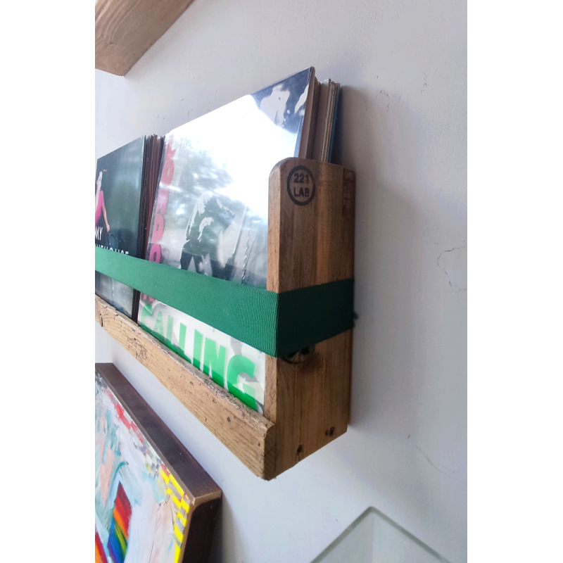 Un porta vinili da muro in legno di recupero è un pezzo di arredamento compatto e sostenibile, ideale per gli amanti della musica.
