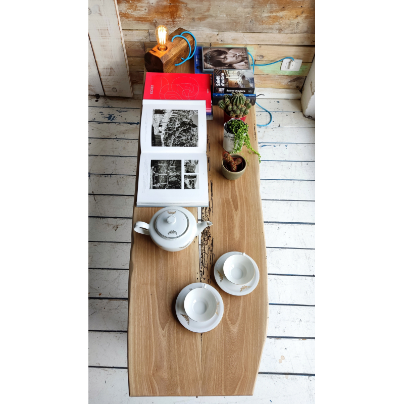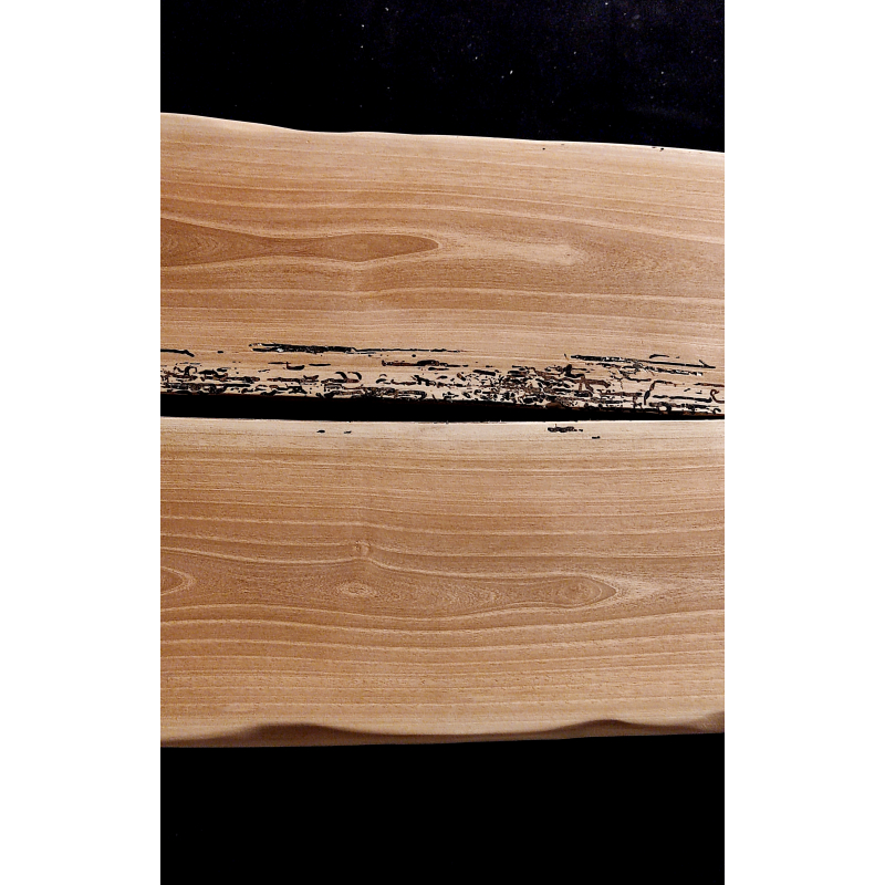 Per proteggere e preservare la bellezza naturale del legno, le spaccature e le imperfezioni sono state chiuse con una resina nera di alta qualità.