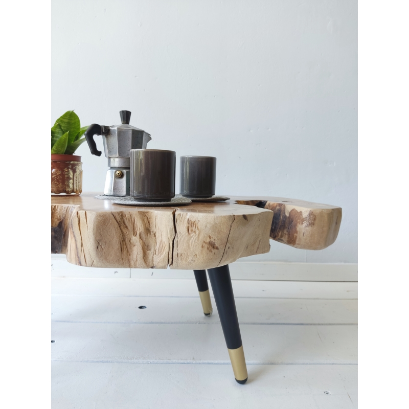 Questi tavolini incarnano la filosofia giapponese del wabi-sabi, trovando la bellezza nell'imperfezione e nell'autenticità. Ogni coffee table è unico, con dettagli che riflettono il passare degli anni e l'interazione con gli elementi naturali.