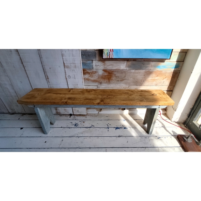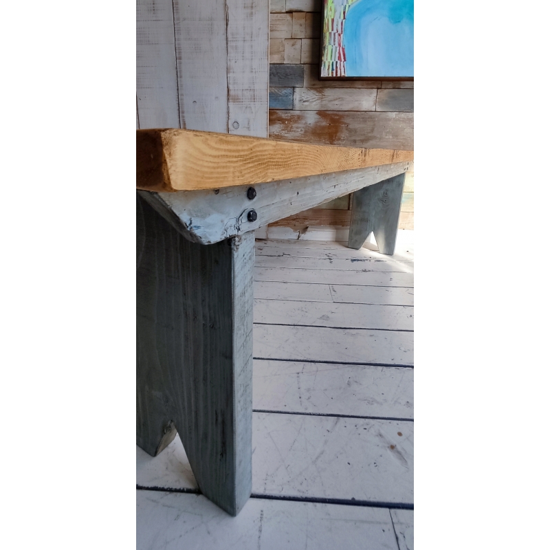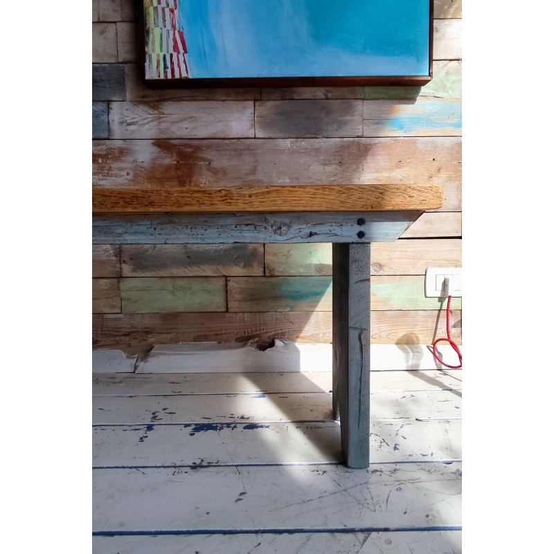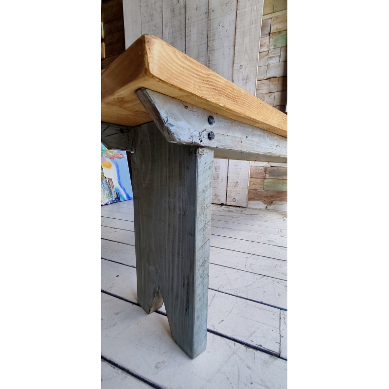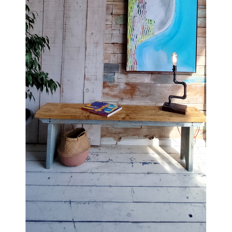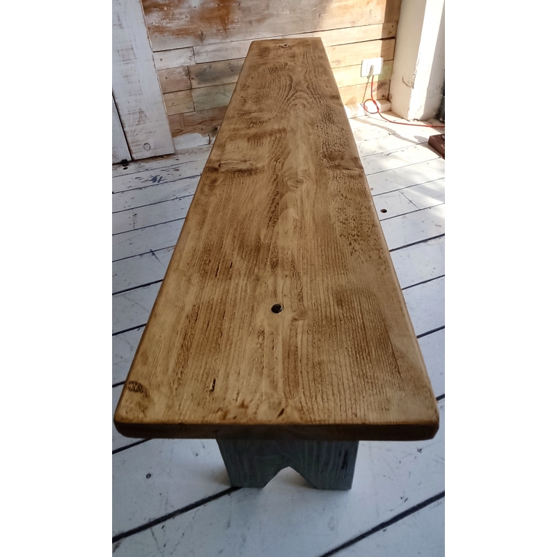 Panca in legno in stile country realizzata con tavole recuperate da vecchie impalcature dei muratori.