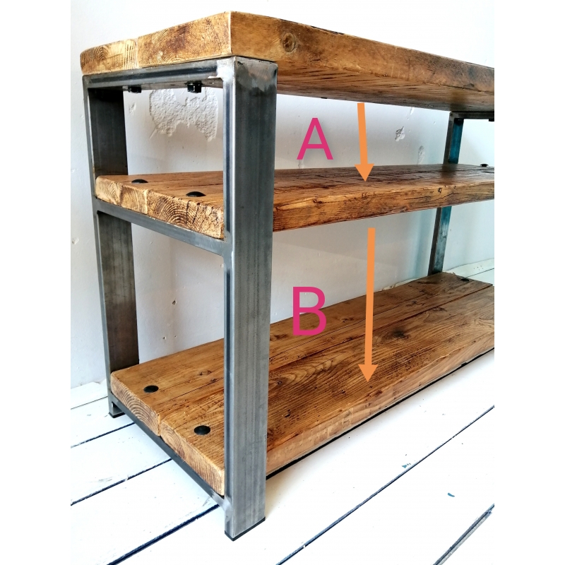 Il ripiano (B) ha un'altezza di 33 cm che è l'latezza per lo stoccaggio dei vinili o altro.
