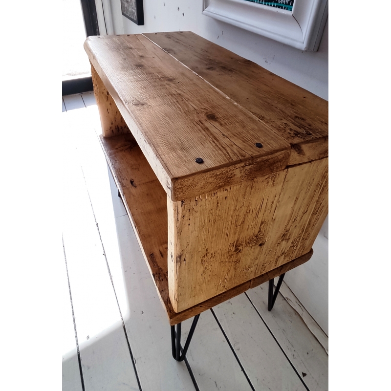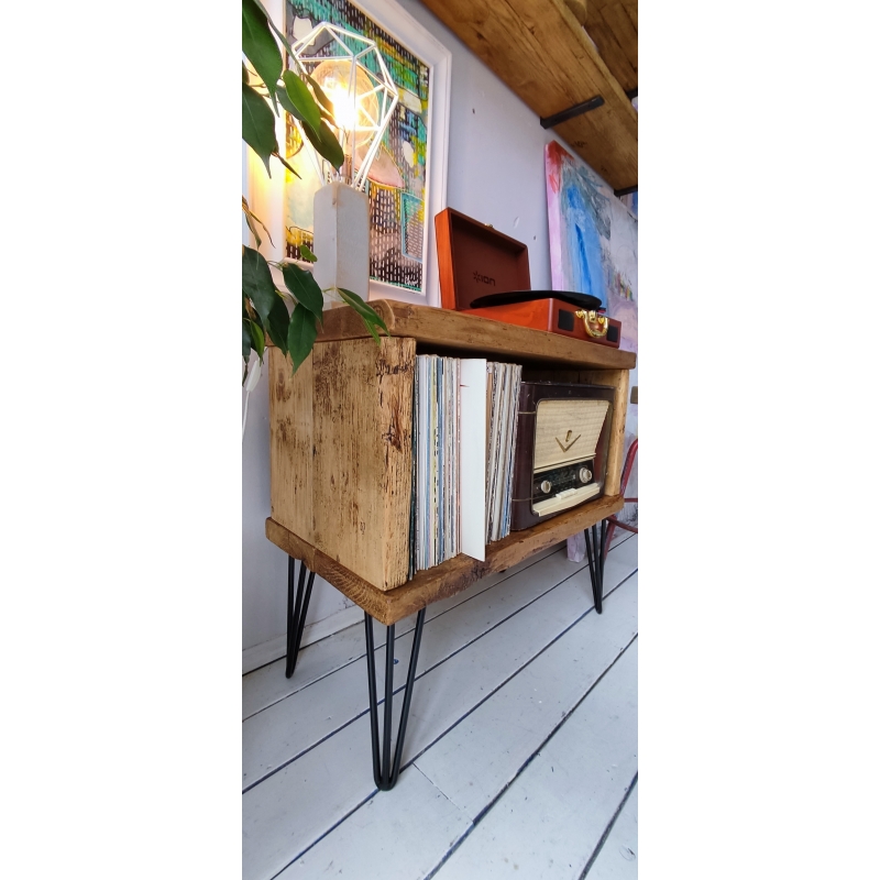 Mobile per giradischi e raccolta vinili, mobile tv o media consolle realizzato con tavole recuperate da vecchie impalcature dei muratori.