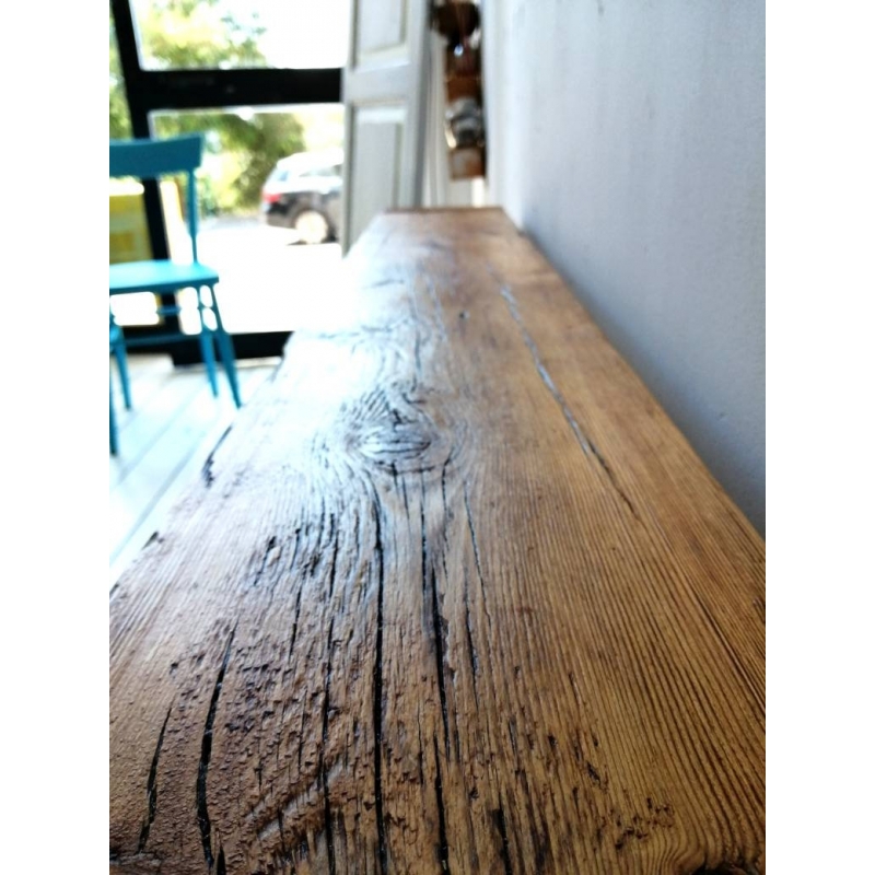 Legno di abete di recupero di 4.5 cm circa di spessore recuperato da vecchie tavole usate dai muratori per le impalcature.
